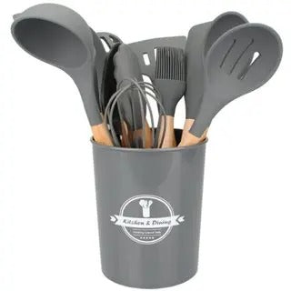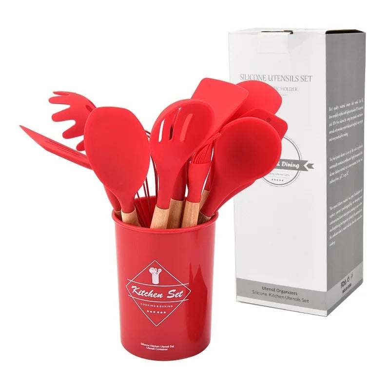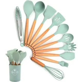 kit de cozinha em silicone com cabo de madeira - Praticidade e elegância!
